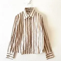 ☆【ミクスト】ボタンシャツ フルボタン ストライプ 長袖 綿混 カジュアル M