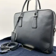 【極美品】プラダ 2way ブリーフケース サフィアーノレザー ネイビー