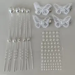 新品未使用 ウェディングヘアアクセサリー 蝶々クリップ パールユーピン シール