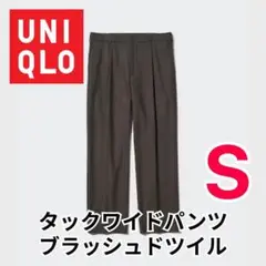 【UNIQLO/ユニクロ】タックワイドパンツ(ブラッシュドツイル) ブラウン S