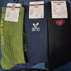 ✨️新品 ✨️ユニクロ コラボキャラクター 刺繍ソックス3点セット25-27cm
