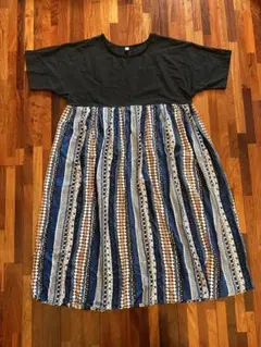 【特価】Zizhuo 民族風ストライプ柄 半袖ワンピース 大きいサイズ