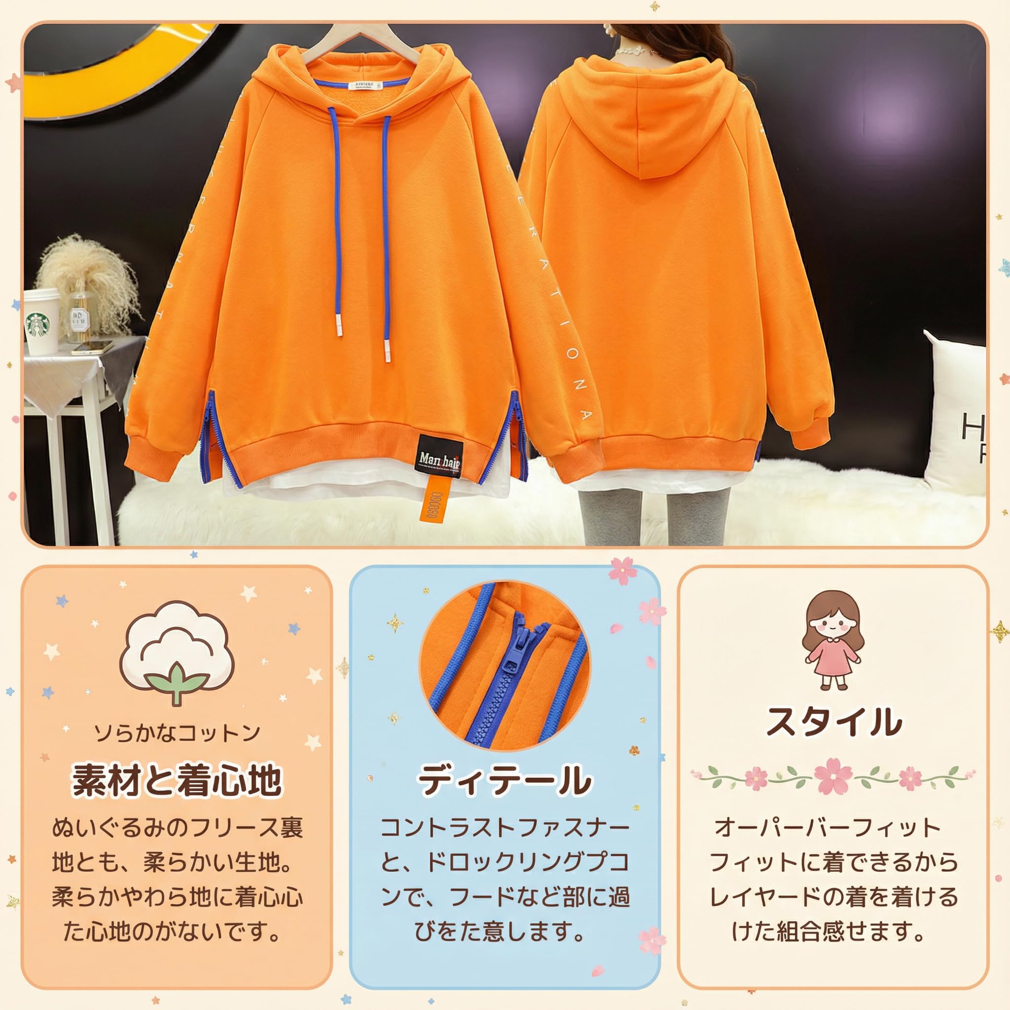 | 首回りのスタイル: | フード付きネック |