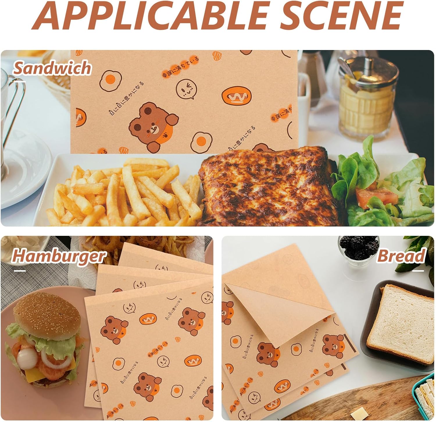 紙製の食品包装紙。紙素材で作られており、独特の臭いがなく、使用できます。ハンバーガーの包装紙。サンドイッチやその他の揚げ物などの脂っこい食品や包装食品を防ぐように設計されています。ハンバーガーの包装紙。残り物を保管したり、ピクニックに持っていくのに最適です。オフィスのサンドイッチ、ランチボックス、パン、チーズ、果物、野菜、スナック、お菓子などの食品。