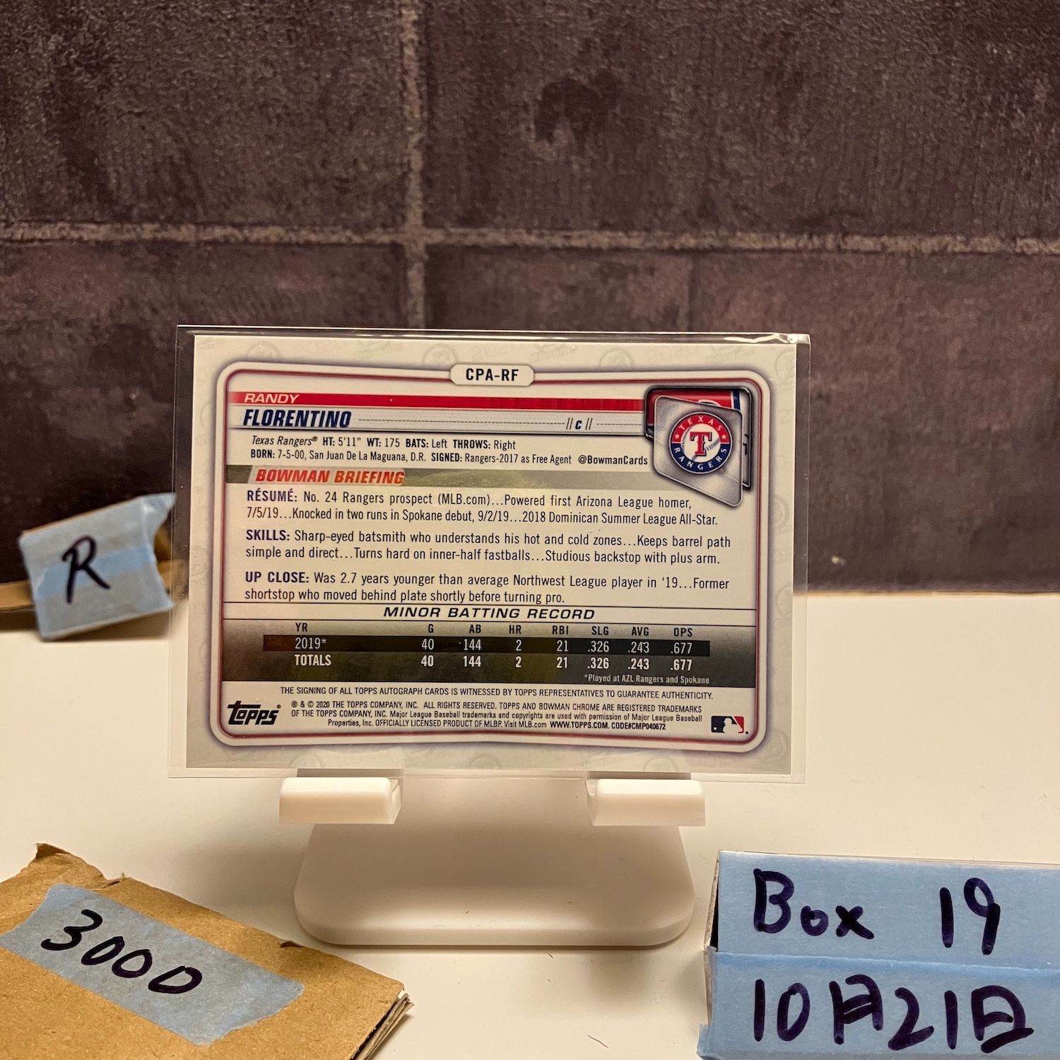 2020 Topps 1st Bowman Chrome Randy Florentino 117/250 直筆サインカード Texas Rangers Purple Refractor Parallel