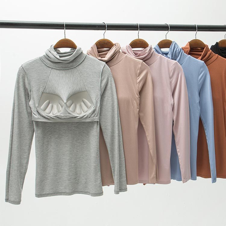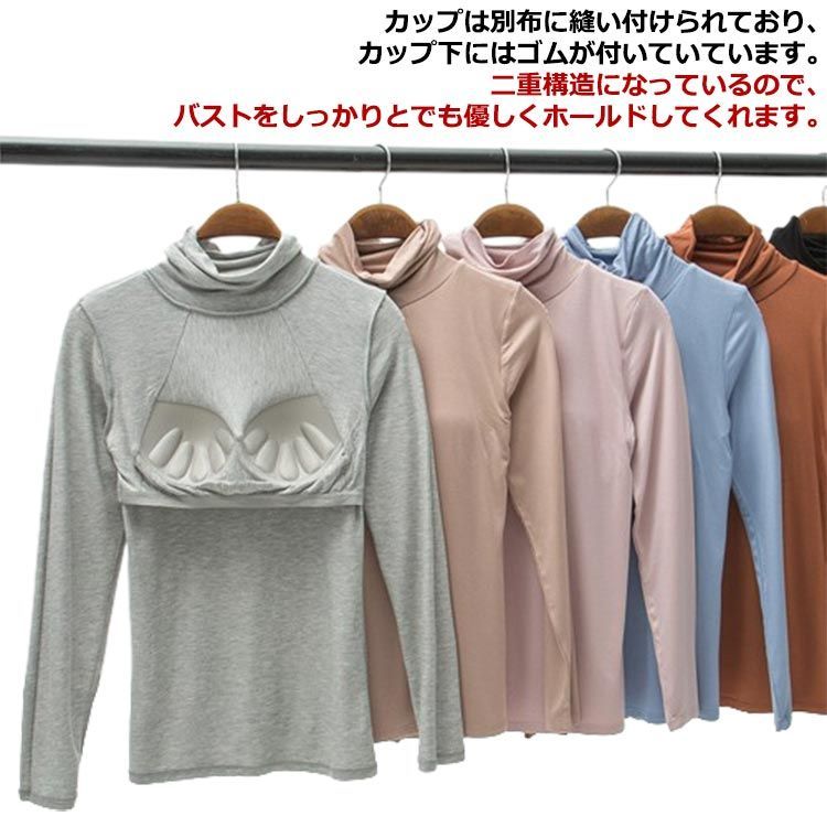 カップ付き ブラトップ インナー レディース カップ付きインナー タートルネック ハイネック 大きいサイズ カットソー Tシャツ 肌着 部屋着 アンダーウエア ストレッチ 伸縮性 締め付けない シンプ#wunib1205