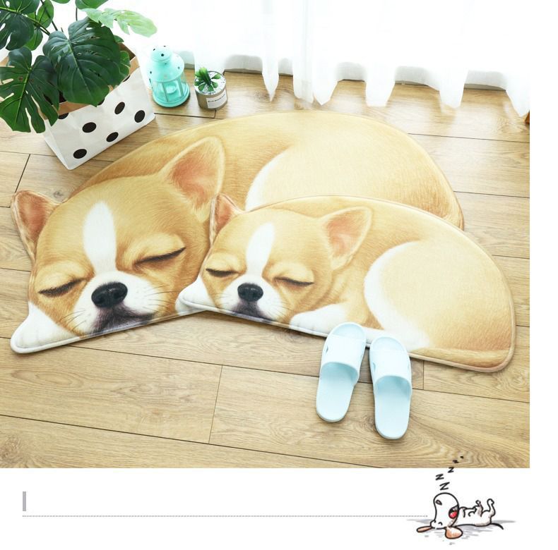 玄関マット カーペット フロアマット ラグマット 3D犬柄 いぬ 洗える 滑り止め付 リビングルームカーペット ソファ 40×87cm ワンチャン