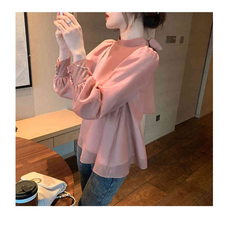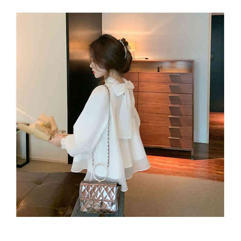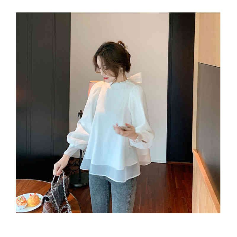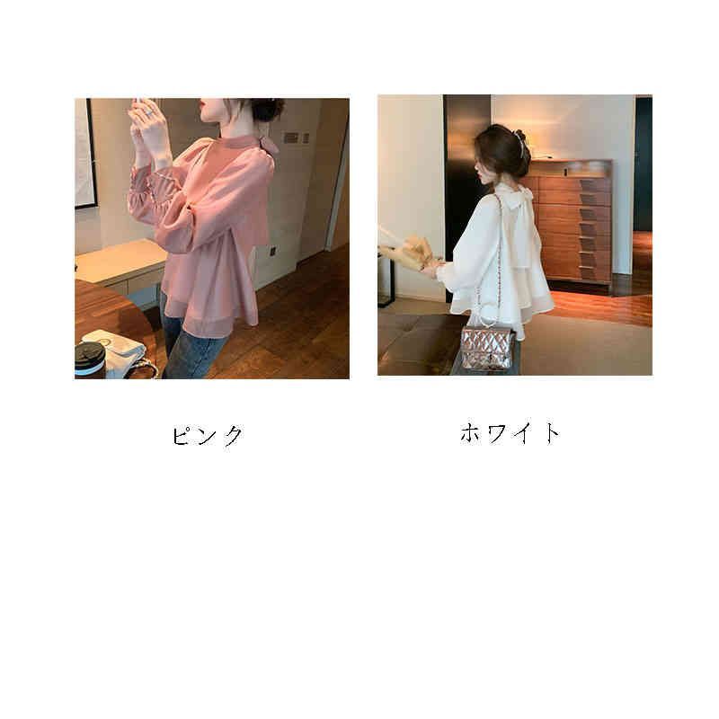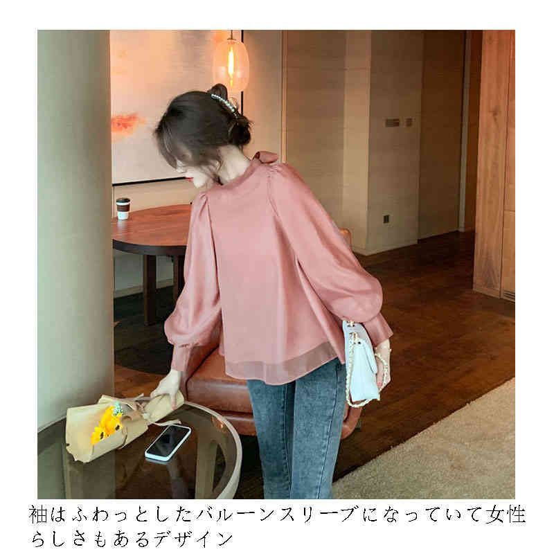 ブラウス レディース 長袖 パフスリーブ リボン 後ろリボン バックリボン ボウタイ フレア バルーンスリーブ きれいめ オフィス フォーマル 大人 無地 トレンド 体型カバー 着痩せ ゆったり クル#pdd269