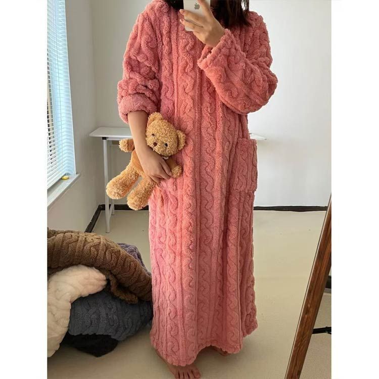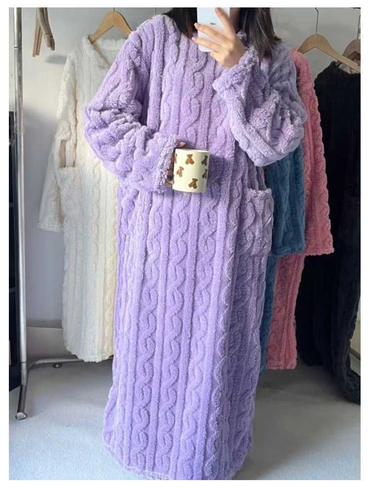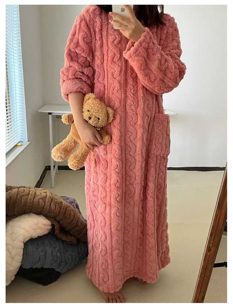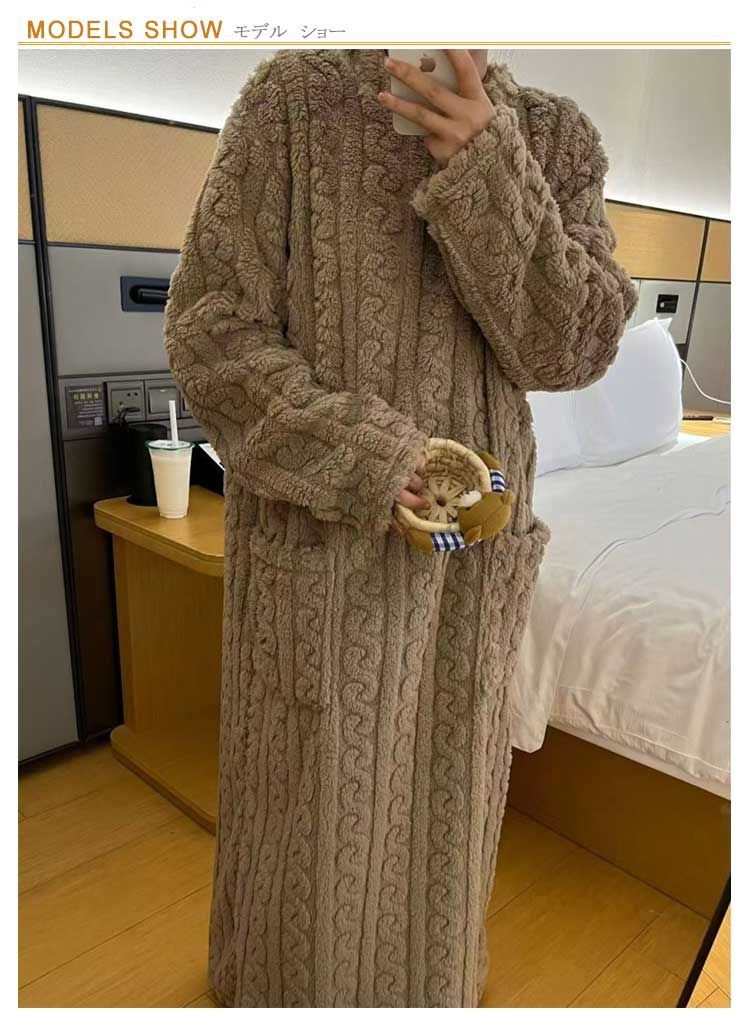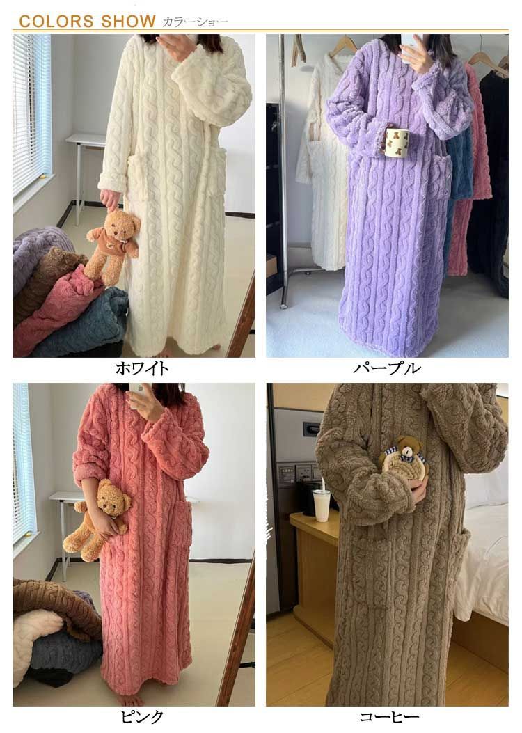 ルームウェア レディース もこもこ ルームワンピース パジャマ ワンピースパジャマ 部屋着 ワンピース 可愛い ネグリジェ 厚手 長袖 寝巻き ふわふわ ガウン 暖か 寝間着 春 秋 冬 ルームウェア#itaiya5281