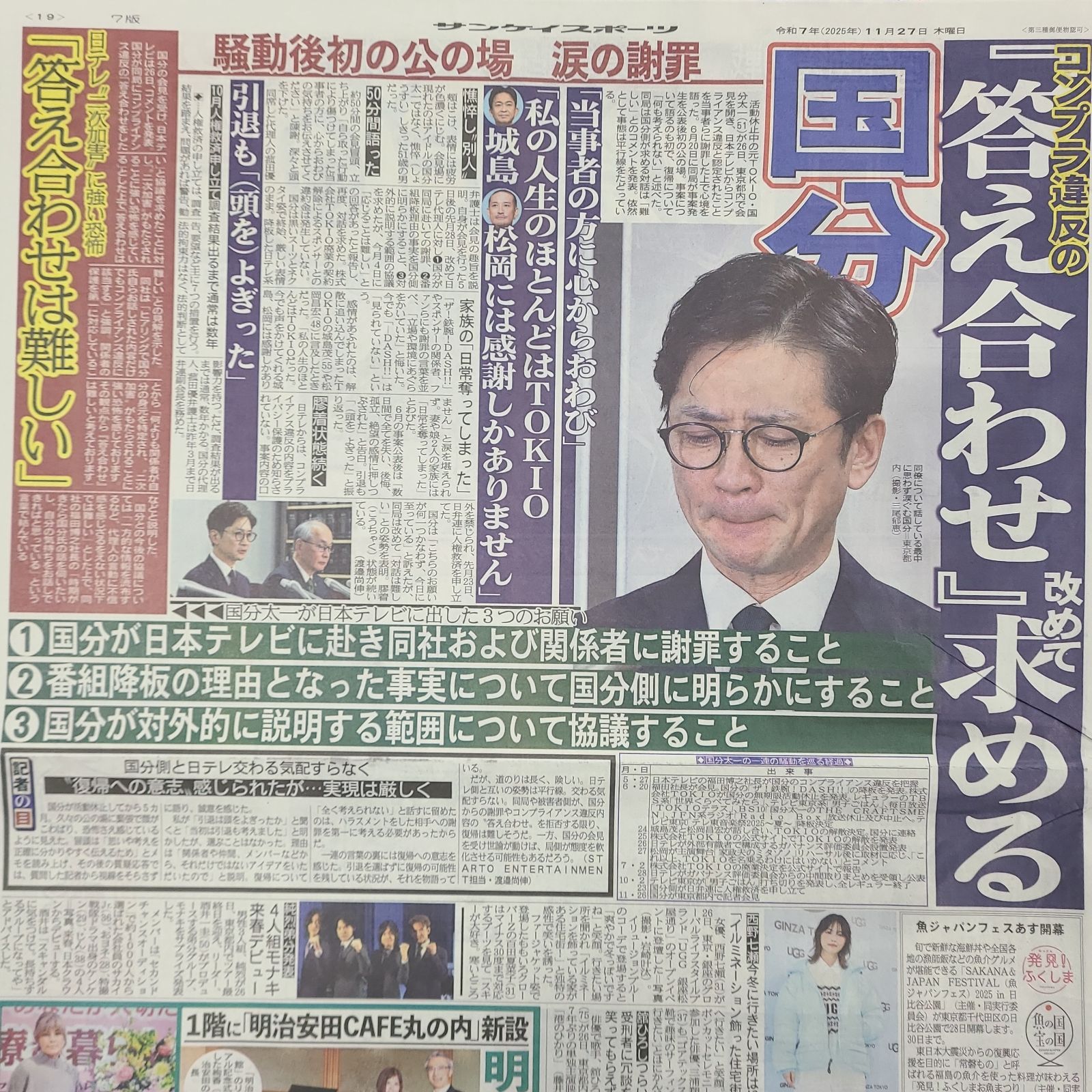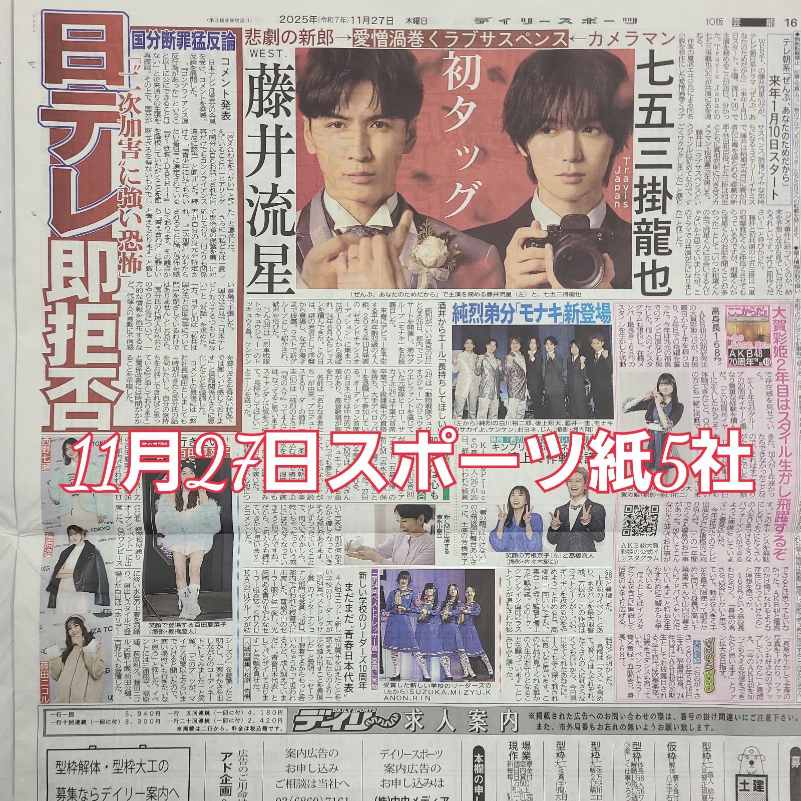 関東版の新聞になります。