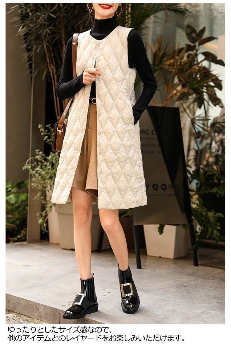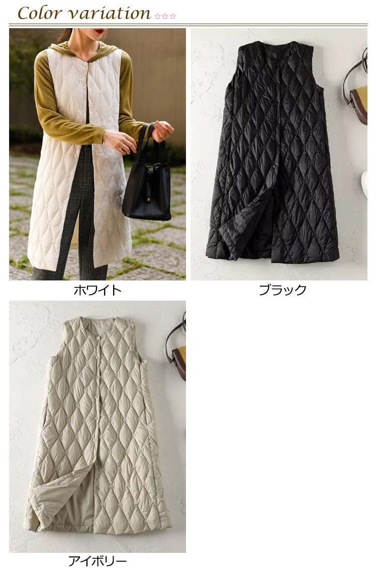 キルティング ベスト レディース 秋 冬 トップス 大人 ロング 中綿 丸首 キルティングコート 中綿コート ノーカラー キルト インナーベスト ライナー ダウン風 薄手 軽量