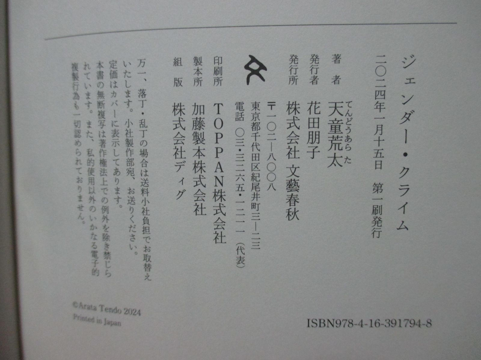 【単行本・初版】ジェンダー・クライム/天童 荒太