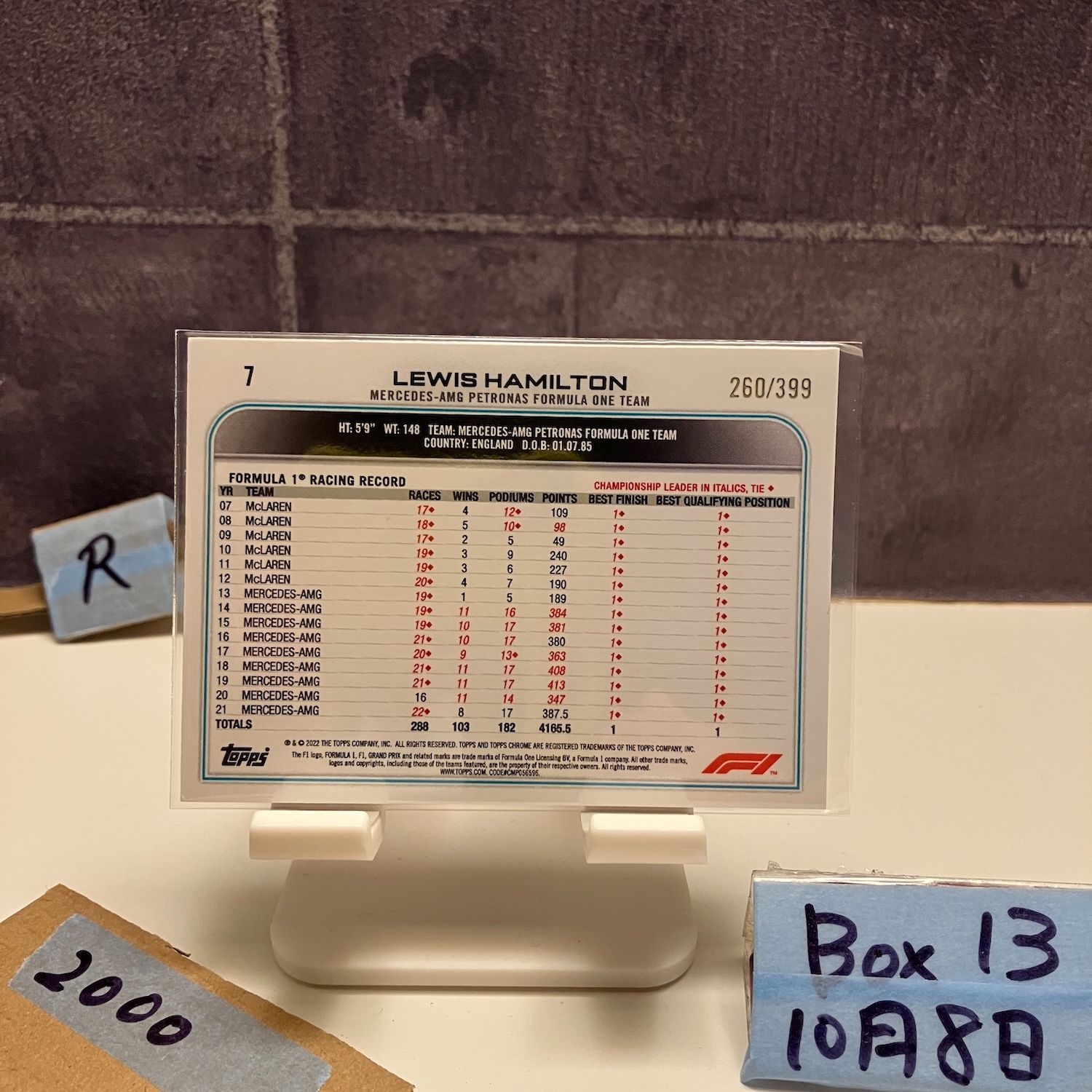 2022 Topps Chrome Lewis Hamilton 260/399 Mercedes-AMG Petronas Formula One Team Purple Refractor Parallel