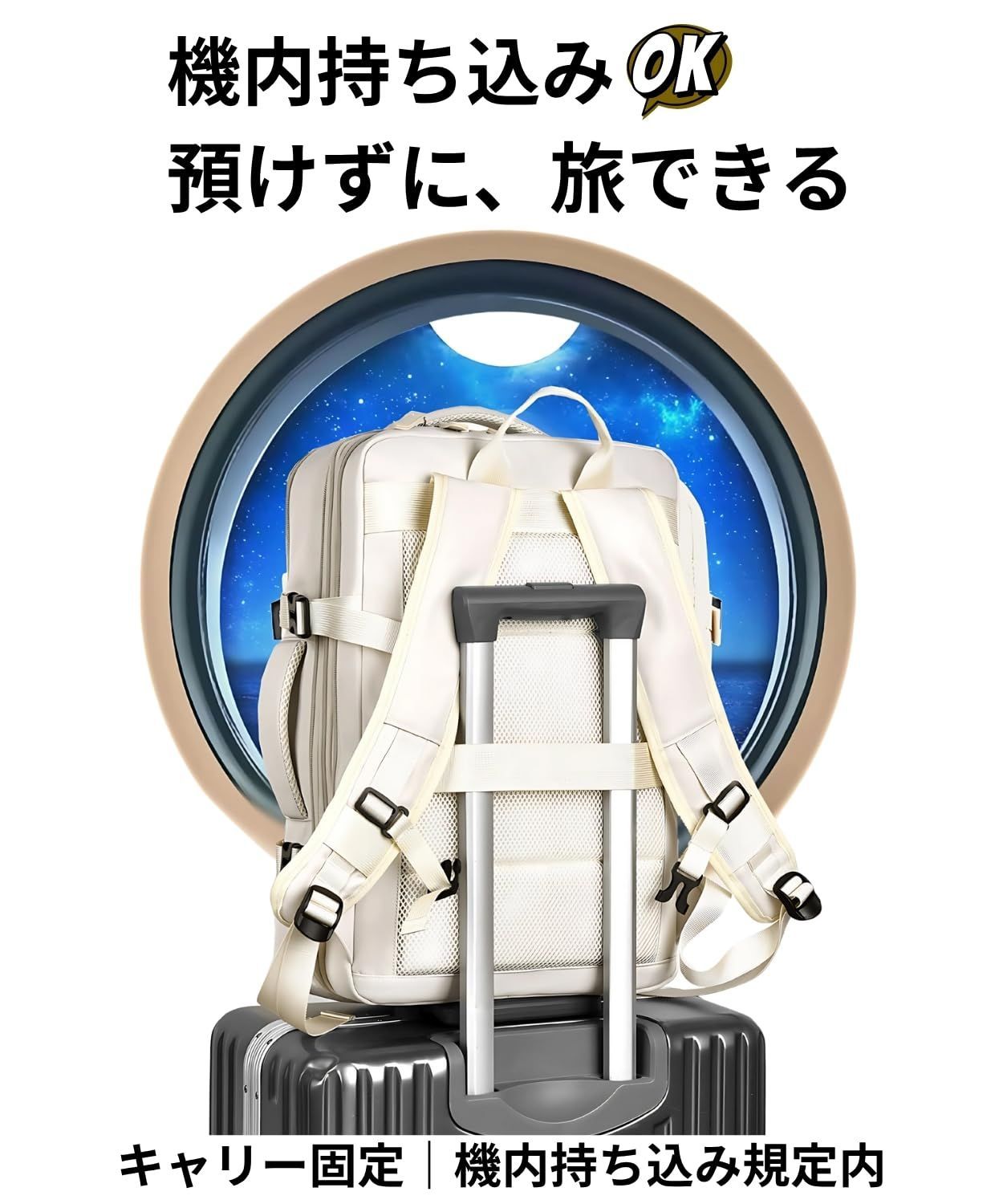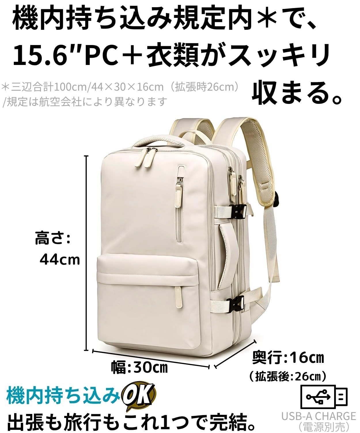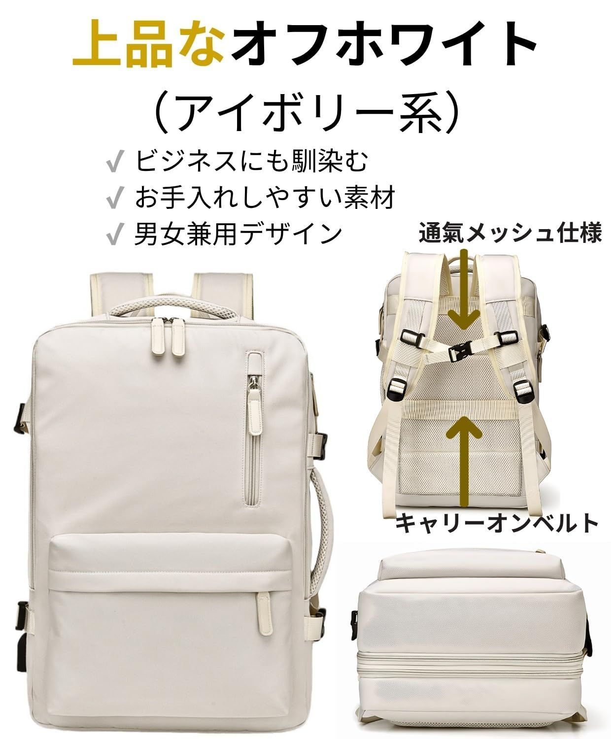 [Ventury] 旅行 リュック 機内持ち込み レディース 軽量 撥水 15.6型PC対応 拡張30L キャリーオン 自立スクエア 通勤 出張 オフホワイト(アイボリー系)