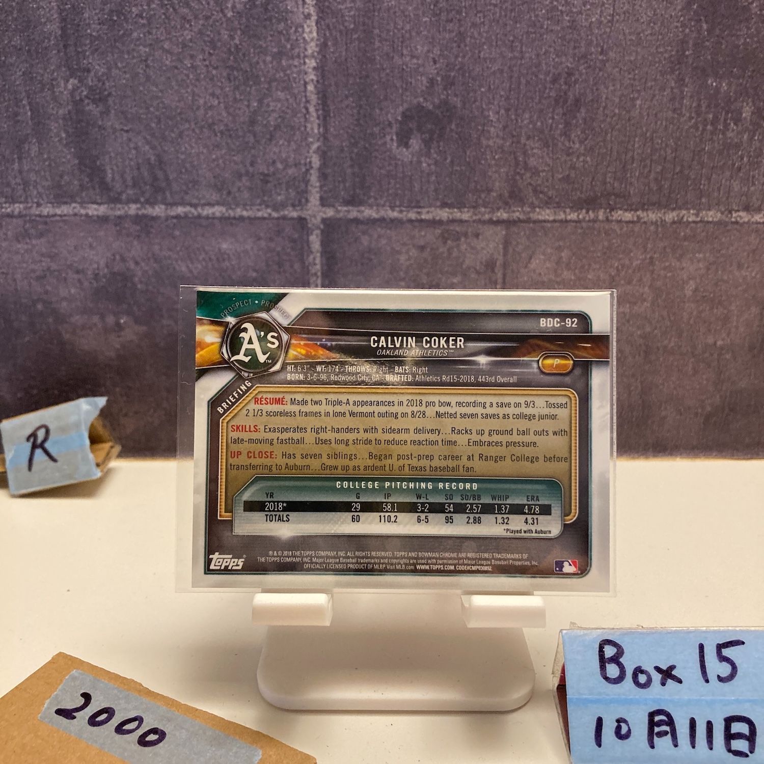 2018 Topps Chrome Calvin Coker 22/50 Oakland Athletics 1st Bowman Refractor