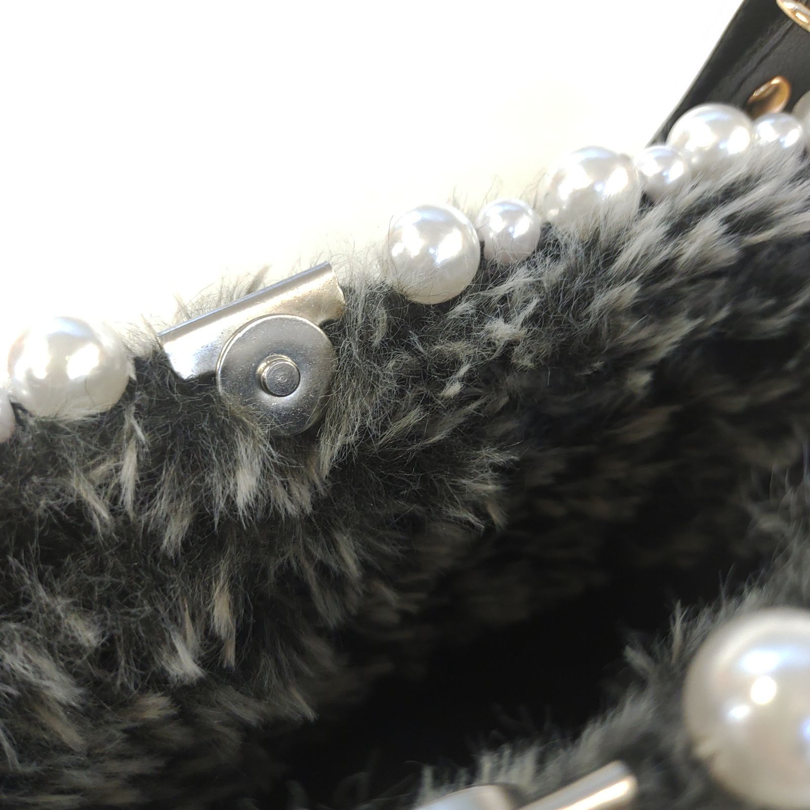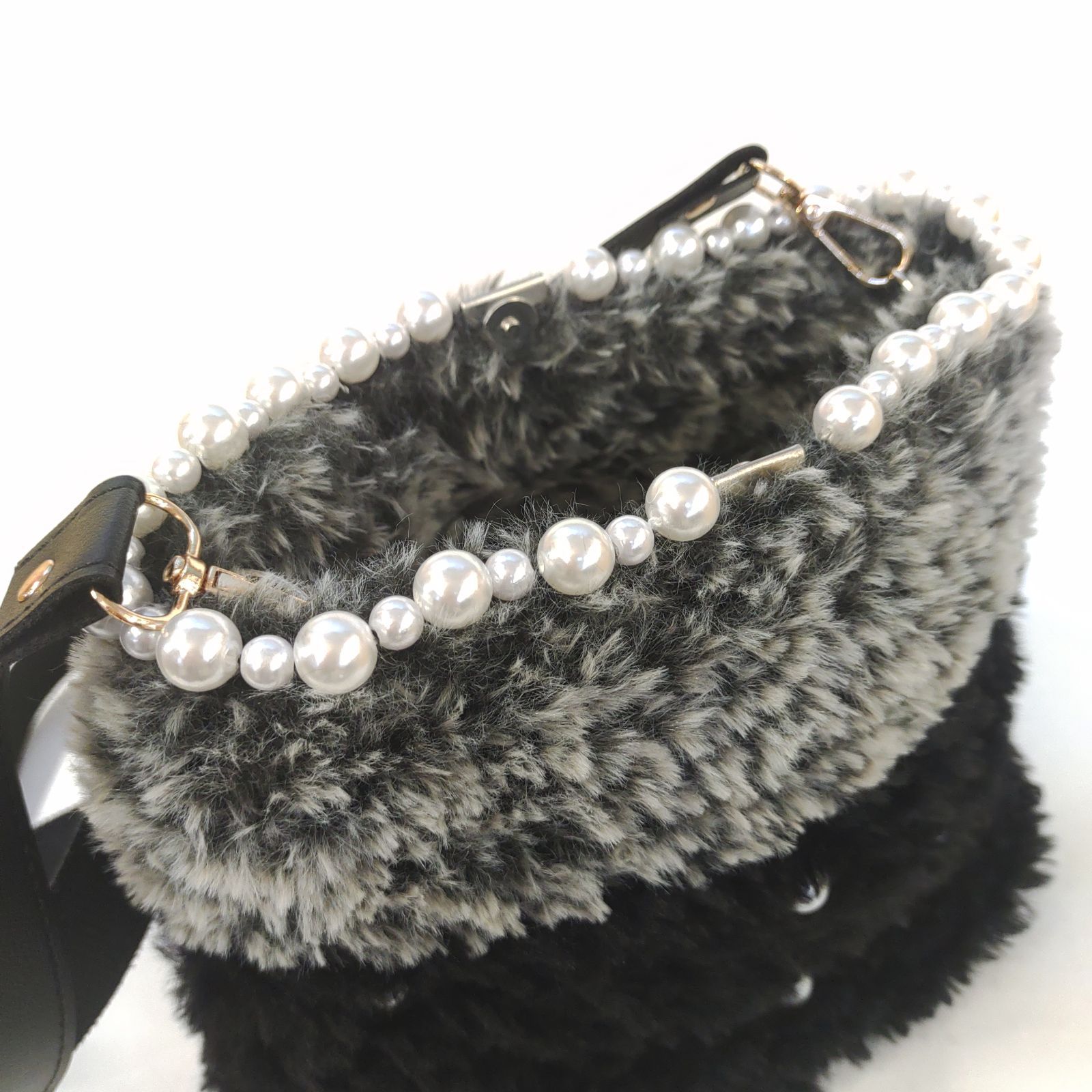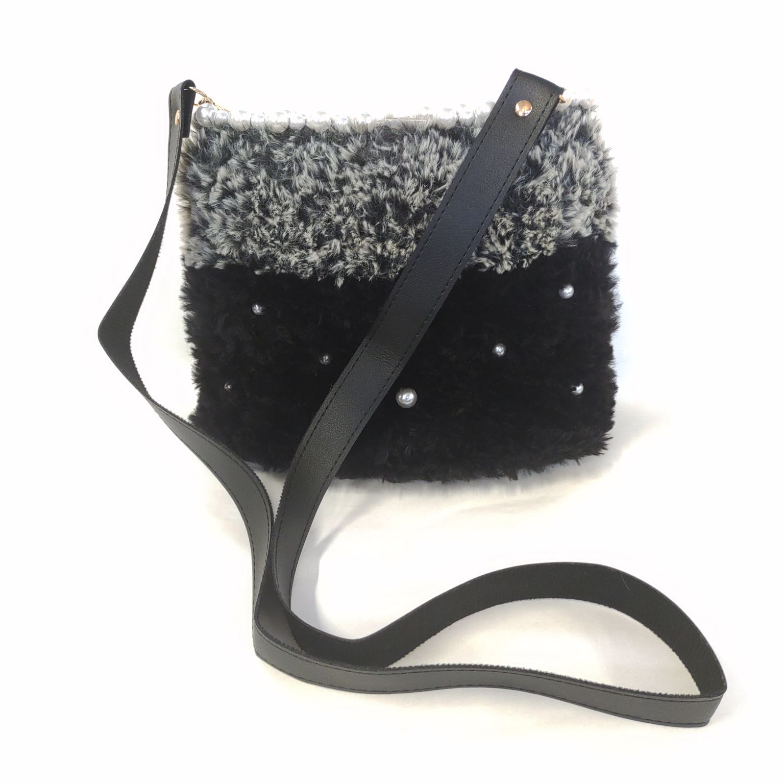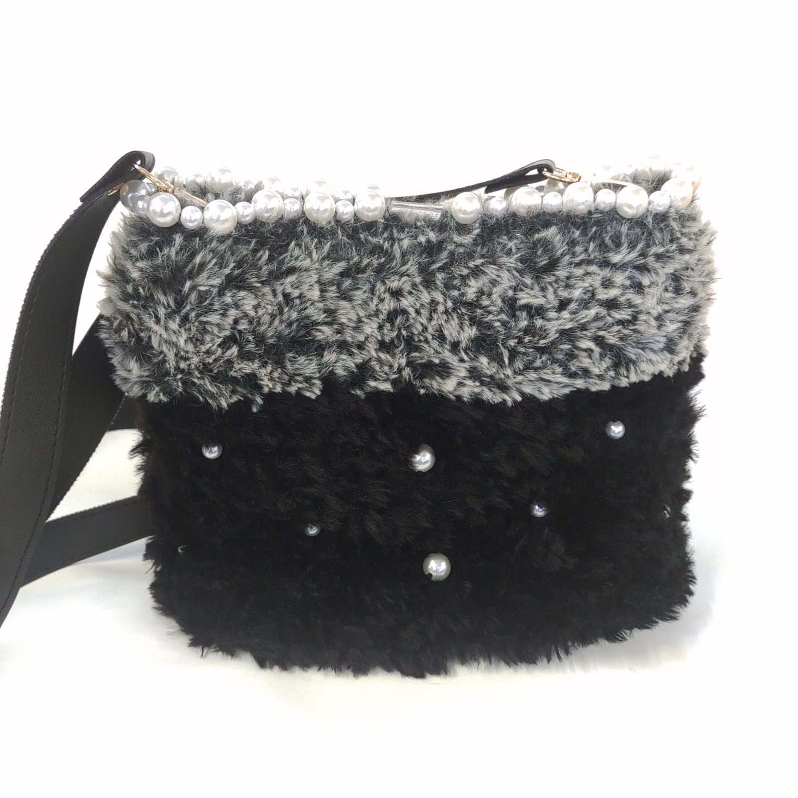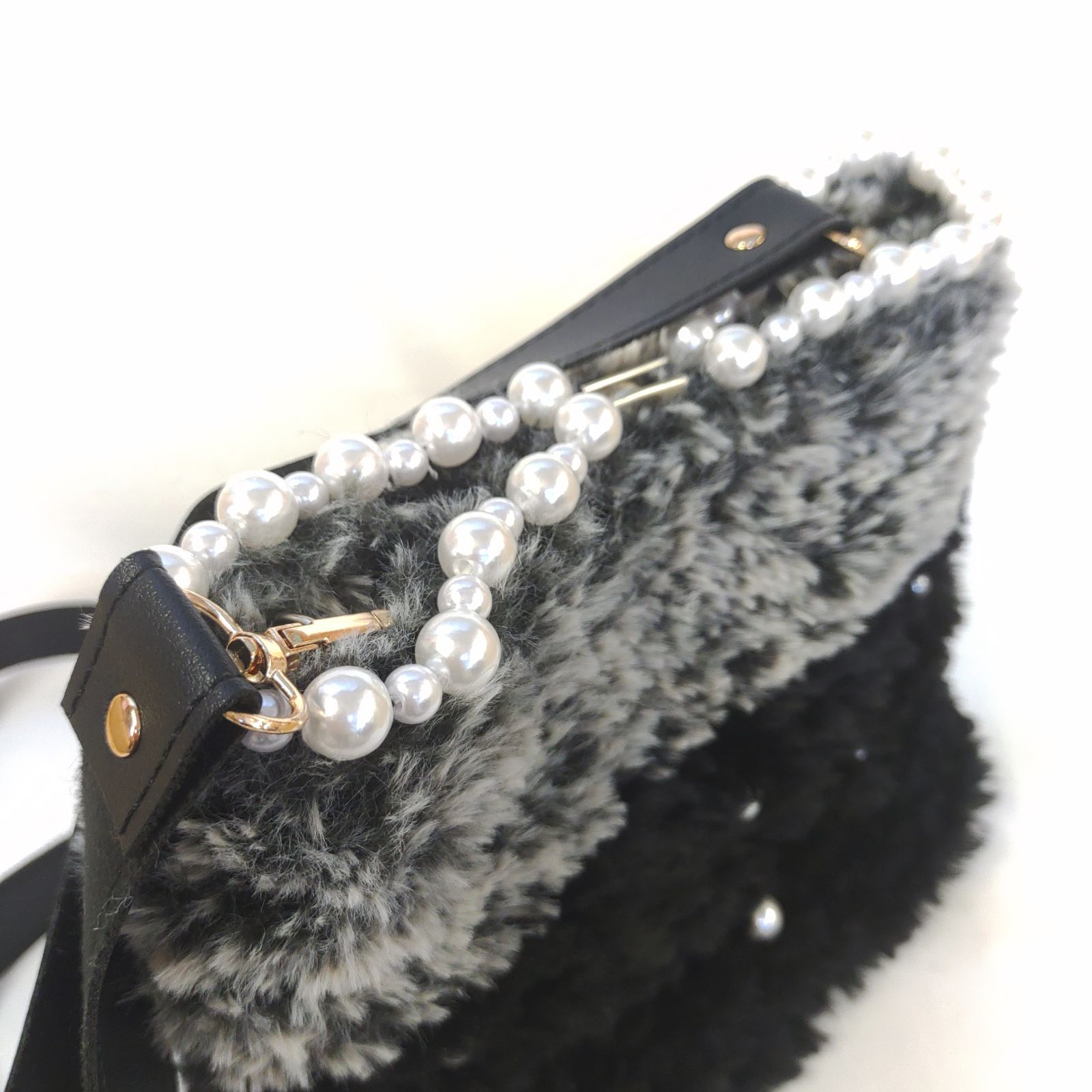【ハンドメイド】 ショルダーバッグ ブラック グレー ボア