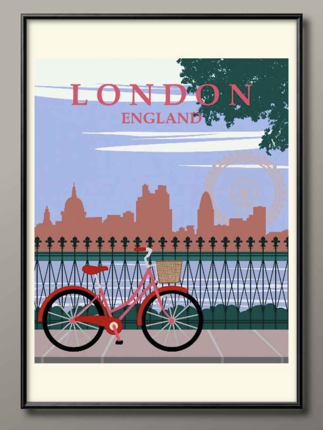 06412ビンテージ ロンドン 自転車 A3 サイズ ポスター アート おしゃれ 絵画 インテリア 北欧 イラスト マット紙 艶消し アートパネル 額 フレーム デザイン 壁掛け ギフト 新築祝い ディスプレイ