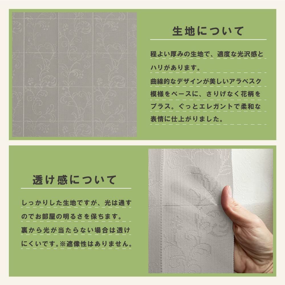 ・生地の生産から縫製、検品まで、安心安全の日本製です。 ・帝人フロンティア㈱の特殊繊維(エコリエ)を使用しているので、機能性が高く遮熱性、断熱性、保温性に特に優れています。 ・取り付けが簡単で突っ張り棒(フリーポール)で手軽に取り付け出来ます。 ・階段や部屋と部屋の間など間仕切りや見られたくないところの目隠しにもお使い頂けます。 ・つる草花(アラベスク調)を前面に描いたデザインでお部屋の雰囲気も変わります。 ・約10cm間隔のカットラインをハサミで切って長さの調整が出来ます。 ・生地の生産から縫製、検品まで、安心安全の日本製です。 最後までご確認頂き誠にありがとうございました。 上記をご確認頂き、ご購入いただけましたら幸いです。 何かご不明な点がございましたらお気軽にメッセージからお問い合わせ下さい。