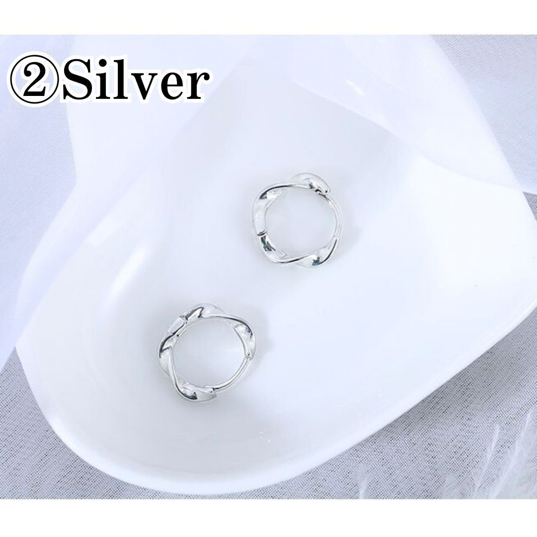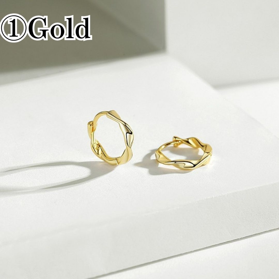 内径10mm ねじれ ツイスト 変形 フープピアス シンプル 上品 レディース メンズ ゴールド シルバー ピンクゴールド