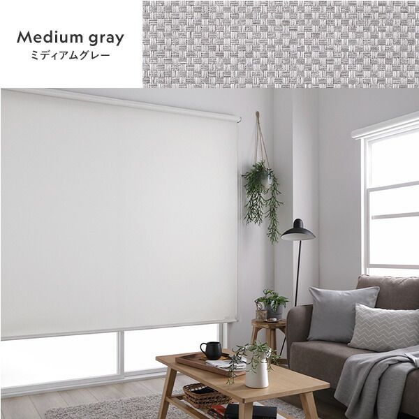 ロールスクリーン 約幅50×丈110cm ミディアムグレー 日本製 国産 防炎 洗える 洗濯機丸洗い可 カーテンレール対応 織生地 MIX生地 賃貸対応 取付簡単 設置簡単 軽い力で昇降可 ロールカーテン インテリア家具 寝室家具 寝室インテリア リビング家具