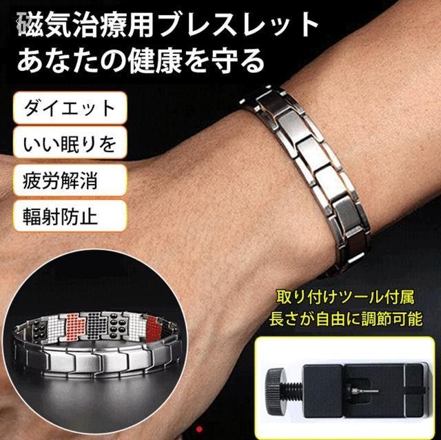新品 ゲルマニウム 磁気 高品質ブレスレット パワーストーン 健康 銀シルバー
