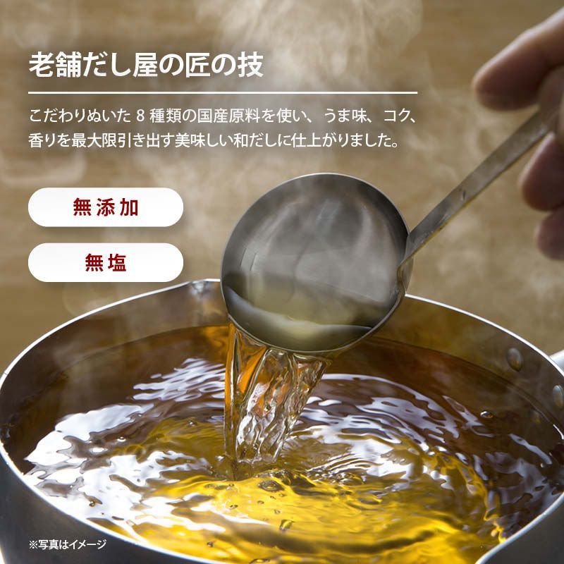 こだわりぬいた8種類の国産原料を使い『うまみ・コク・香り』を最大限引き出す、美味しい和だしに仕上がりました。