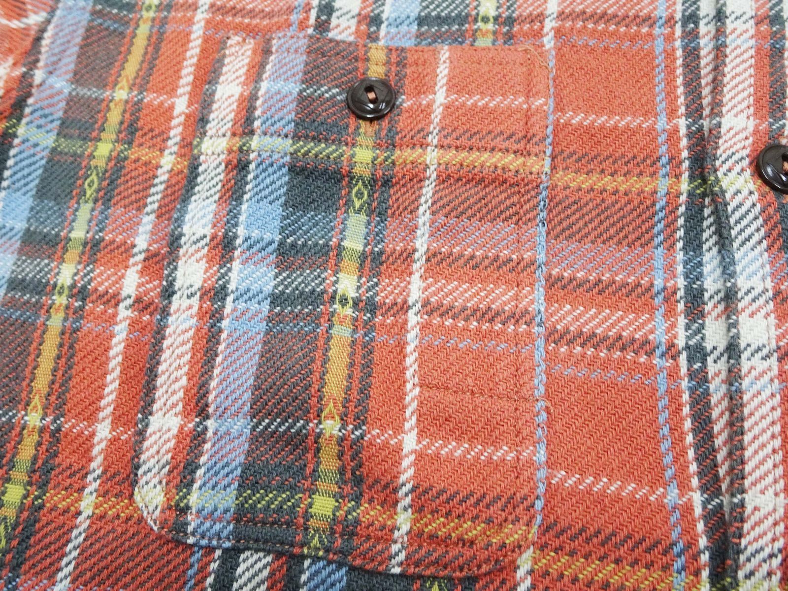 主要部分の縫製は3本針巻き縫いのビンテージワークシャツの仕様を再現した王道的なつくりです。