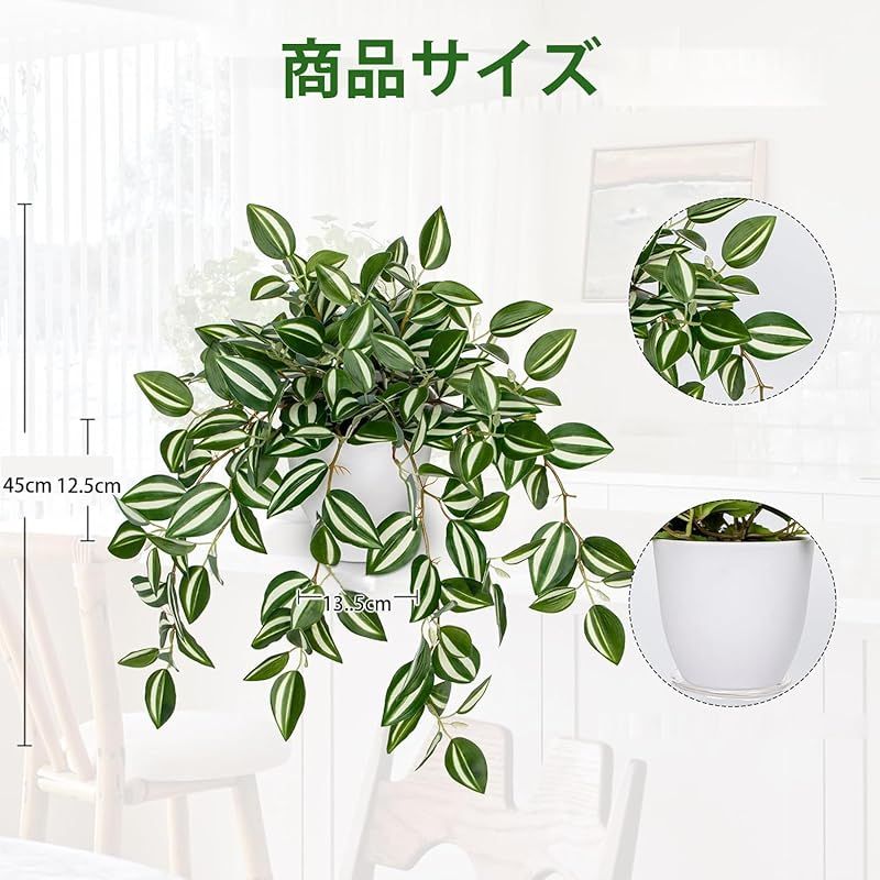 ご覧いただきありがとうございます。 は全国一律無料となっております。 以下商品説明となります。 【商品概要】 【仕様&高品質】全高さ:45CM、ポット:13.5*12.5CM。フェイクグリーンは高品質のPEやシルク材質を採用しております。グラデーション・ハローの技法を用い、葉は自然に着色されています。葉は厚く、質感がよく、遠目には本物と見間違うほどリアルです。植物は内にワイヤーを含み、細部まで心入れの作りで、葉落ち無く何度も使えて長持ちできます。 【配置の自由度】プラスチック製の?を使い、柔らかいので、ぶつけてもケガの心配がないです。鉢には土で飾るため、ナチュラル感更にアップ します。フェイクグリーンは季節や気候や光に左右されず、一年中美しい姿を楽しめます。テーブルの上、席の間、トイレや玄関に窓枠などあらゆる場所に観葉植物を配置できます。インテリアとして人気があります。 【大活躍なアイテム】シマムラサキツユクサ (ゼブリナ)の特徴である、織り交ぜられた縞模様の葉は、インテリアに個性と活気を与えます。光沢感のある葉の質感が、空間にモダンでスタイリッシュな印象をプラスします。花言葉は、「尊敬」や「知恵」です。おしゃれな雰囲気であることからインテリアや友人へのプレゼントとしてお勧めです。 【安心感&お手入れやすい】植物アレルギーのある人、忙しいや植物に詳しくない人にとって、心配は一切ないし、安心してフェイクグリーンを楽しめます。ほこりが付着した場合は、湿らせた布で拭いてだけで長期間美しい姿を保ってくれるフェイクグリーンは、忙しい現代人にとって理想的なインテリアアイテムです。引っ越しや新しい家への移動を機に、フェイクグリーンの魅力を体験してみませんか? 【アフターサービス】万が一製品に損傷が発生した場合は、当店にご連絡ください。連絡方法:アカウントサービス内の「アカウントサービス」→「注文履歴」→「販売:Villa Como」→「質問する」から、ご連絡をいただきますようお願い申し上げます。24時間以内に対応させていただきます。 【商品説明】 【仕様&高品質】全高さ:45CM、ポット:13.5*12.5CM。フェイクグリーンは高品質のPEやシルク材質を採用しております。グラデーション・ハローの技法を用い、葉は自然に着色されています。葉は厚く、質感がよく、遠目には本物と見間違うほどリアルです。植物は内にワイヤーを含み、細部まで心入れの作りで、葉落ち無く何度も使えて長持ちできます。 【商品詳細】 ブランド:Villa Como 商品種別:人工観葉植物 商品名:【新品】 Villa Como フェイクグリーン インテリア グリーン 人工観葉植物 卓上 鉢植え 造花 エアプランツ 新築祝い 開店祝い 新年 クリスマス オフィス 店 おしゃれ (緑03) 製造元:Villa Como 商品番号:AHP_023 商品内容:Medium 色:縞紫露草(緑)