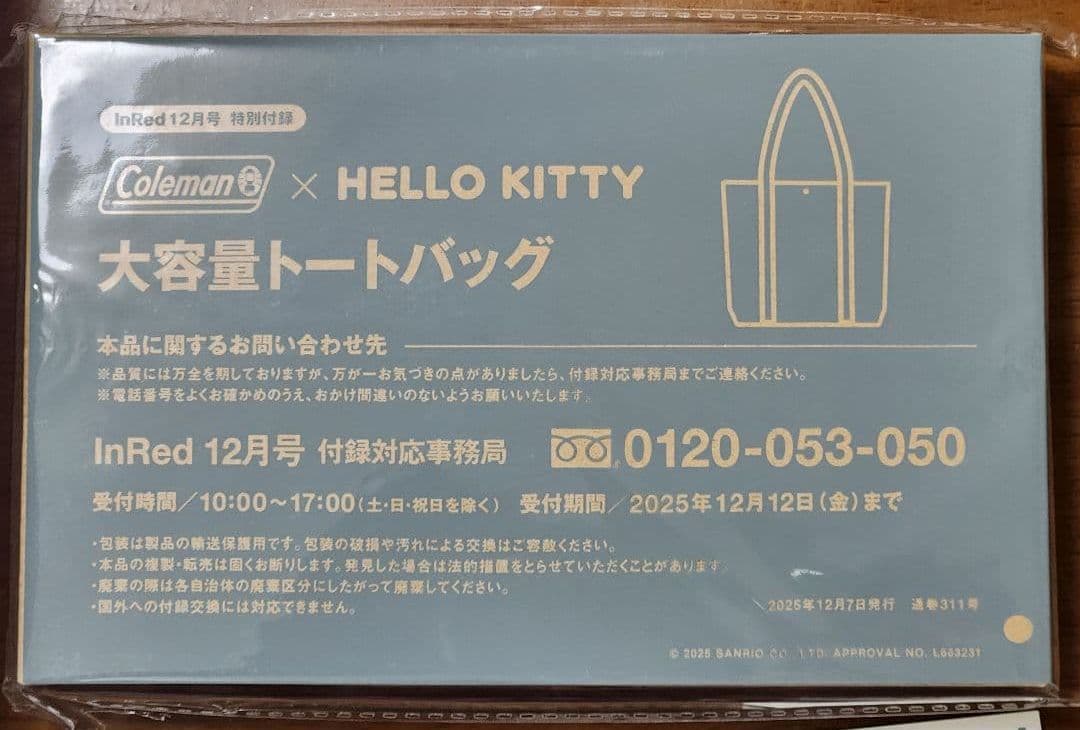 InRed 12月号 付録 Coleman×ハローキティ 大容量トートバッグ