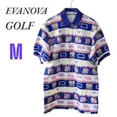 MIZUNO☆EVANOVA GOLF 半袖ポロシャツ M 白/青/紫 綿100
