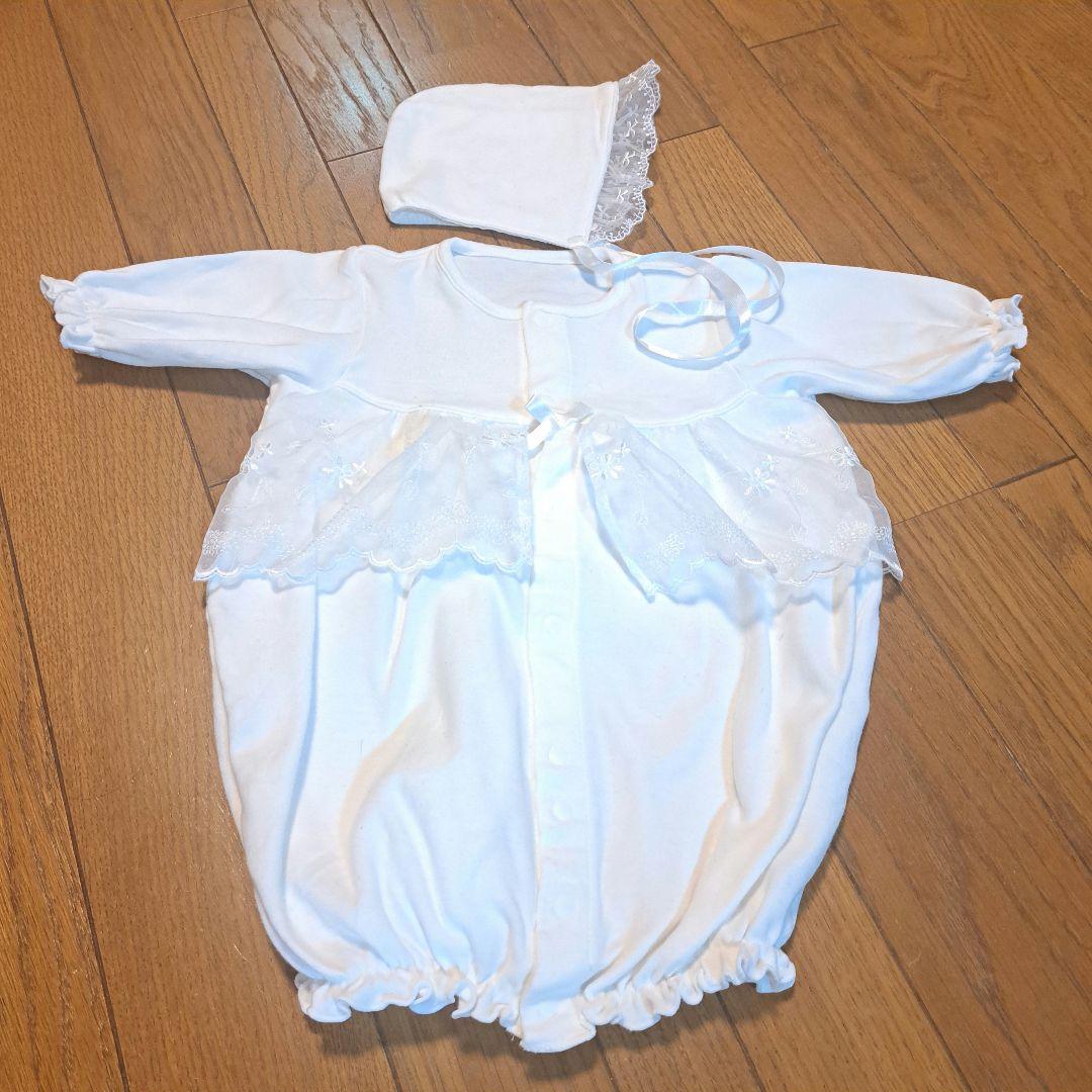 新生児 セレモニードレス 2点セット 帽子 コンビドレス 50〜60 退院着