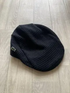 ラコステ ブラック ニット ハンチング帽 ブラック