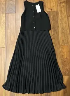 タイムセール✨新品 ZARA ニットワンピース 七分袖 プリーツ ボウタイリボン