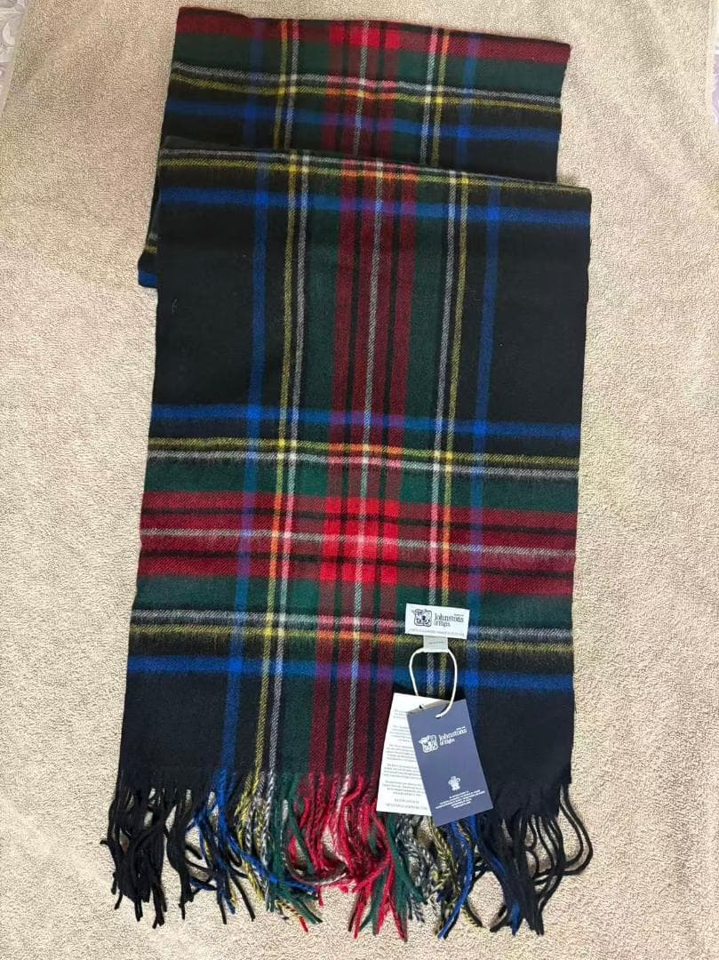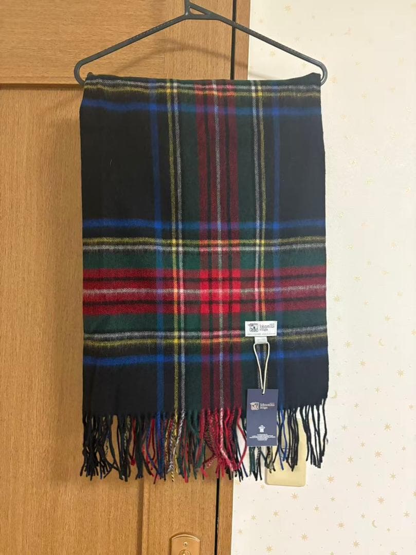 ゆ*も様 未使用品ジョンストンズカシミヤ 大判 ブラックスチュワートカシミヤ