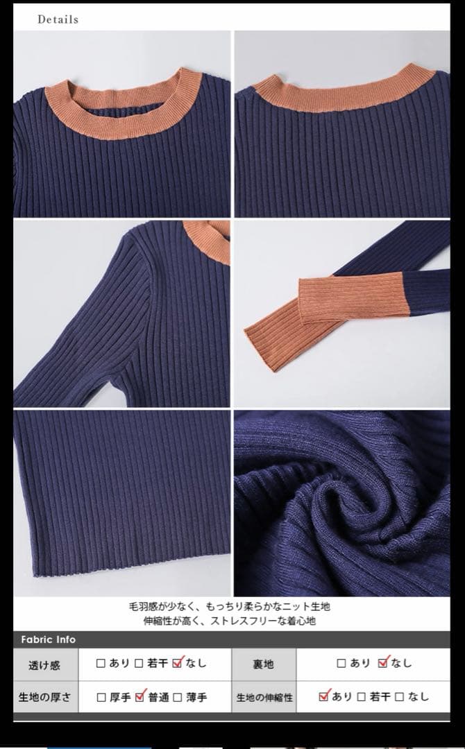ラジエムトップス ニットリブニットセーター着痩せ効果 配色デザインブラックブルー