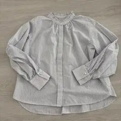 index スタンドフリルブラウスストライプ 長袖 スタンドカラー M