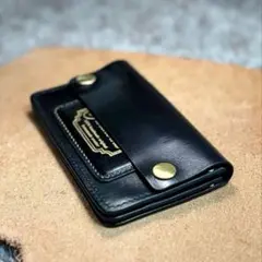【トラッカーウォレット ミドル 3層】 ブライドルレザー ゴールド ネイビー