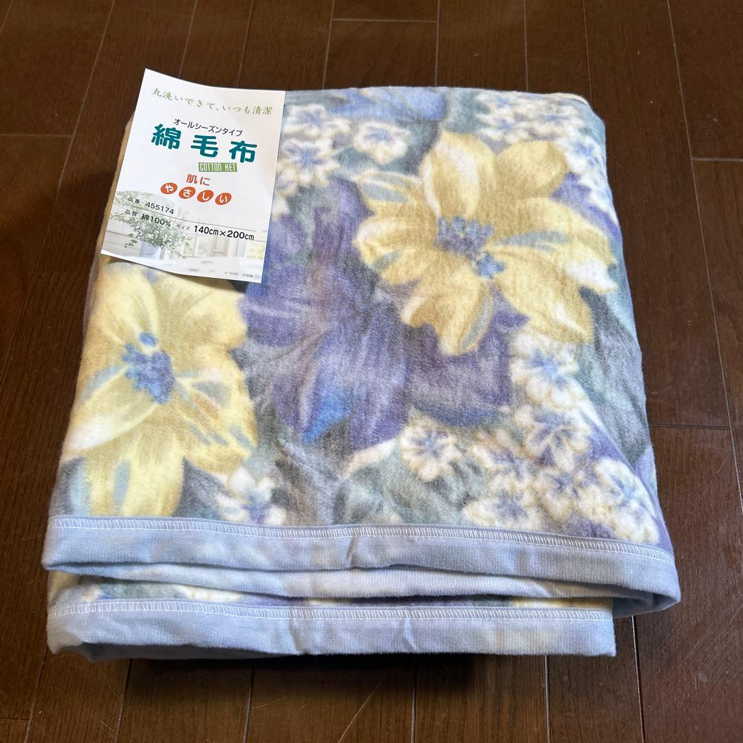 ●綿毛布 ●オールシーズン●花柄 シングルサイズ●新品未使用品ブルー