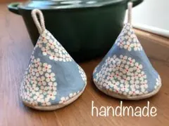 ☆ハンドメイド☆三角鍋つかみ☆サークルフラワーサックス