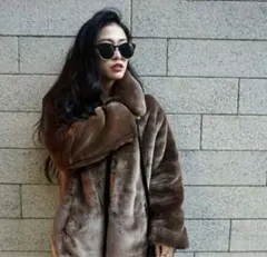 上品ヨーロッパ製※定価8万◆ブルガリア発※RISELIN ファーコート ミンク混 保温 キラキラ 気品 ブローチ付 毛皮ジャケット レディース L