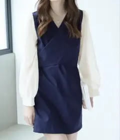 前後2WAYキャンディースリーブディープVワンピース 77-003894