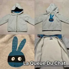 La Queue du Chat グレーのウサギ刺繍フード付きトレーナー 18M