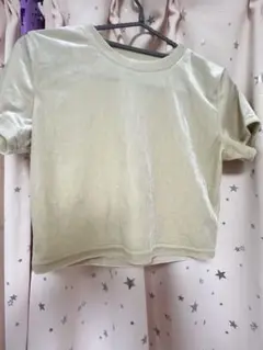 ライトグリーン ベルベット 半袖Tシャツ