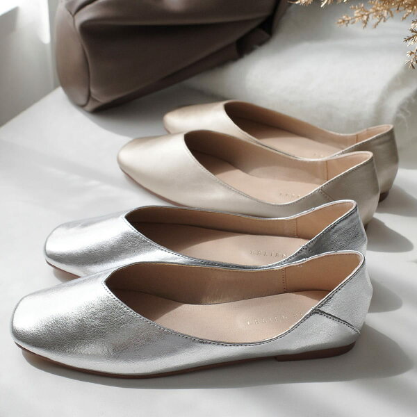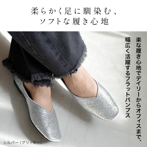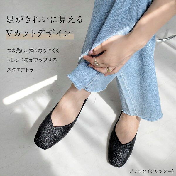 9日20時~30%offクーポン◆パンプス 痛くない 柔らか スクエアトゥ Vカット フラットパンプス 0.8センチヒール ローヒール レディース 履きやすい ブラック ホワイト グレー シルバー 22.5 25.0 軽量 軽い ぺたんこ カジュアル ママコーデ 楽な履き心地