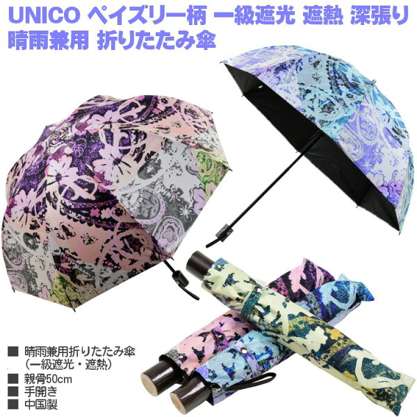 傘 レディース 折りたたみ傘 晴雨兼用傘 UNICO 一級遮光 遮熱 深張り ペイズリー柄 パラソル ウニコ 親骨50cm 手開き UVカット 紫外線防止 防水 加工 UVケア かわいい おしゃれ ブランド 婦人 女