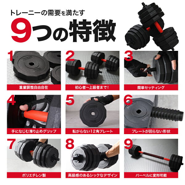 【7980円→6980円クーポン使用で 12/26 23:59迄】【20kg×2個セット】ダンベル 可変式 20kg 2個セット 計 40kg 可変式ダンベル バーベル 筋トレ トレーニング ダイエット エクササイズ 滑り止め付き ジム 3kg 10kg 17kg 重さ調節 ギフト