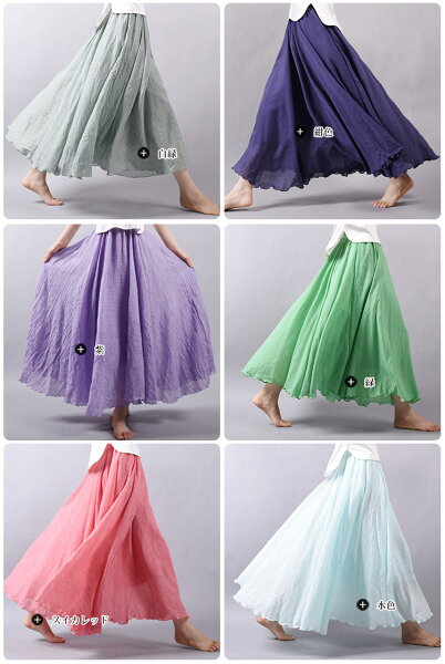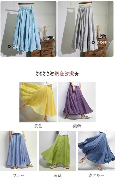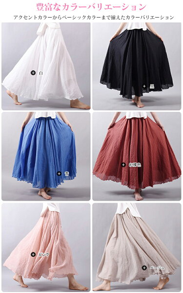 スカート ロングスカート マキシスカート ロング 春 フレアスカート レデイース リネンライク フレア リネン風スカート 亜麻 綿混 マキシ リゾート 体型カバー ふんわり 85cm 95cm