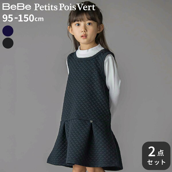 【新春限定 半額】BeBe Petits Pois Vert 【限定商品】くもキルトジャンパースカート+長袖リブトップスセット(95~150cm)子供服 女の子 キッズ ギフト ブランド プレゼント 95cm 100cm 110cm 120cm 130cm 140cm 150cm 発表会 お祝い ジュニア