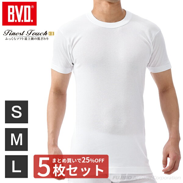 【300円OFFクーポン配布】【5枚セットで送料無料20%OFF!】BVD Finest Touch EX 丸首半袖Tシャツ(S,M,L,LL,3L,4L,5L,6L) 綿100% シャツ メンズ インナー 下着 肌着 抗菌 防臭 無地 fe313-5p コットン