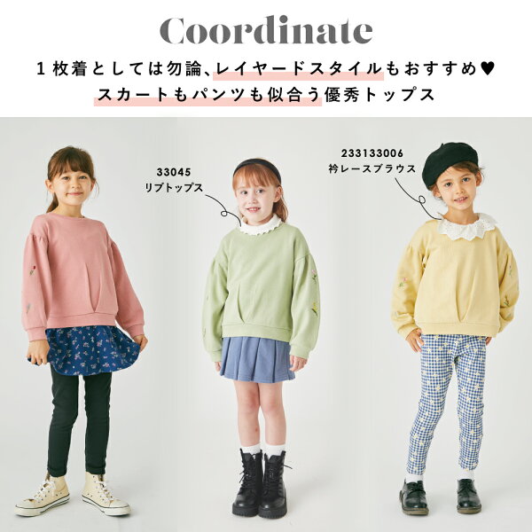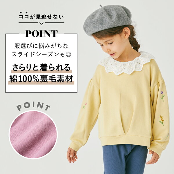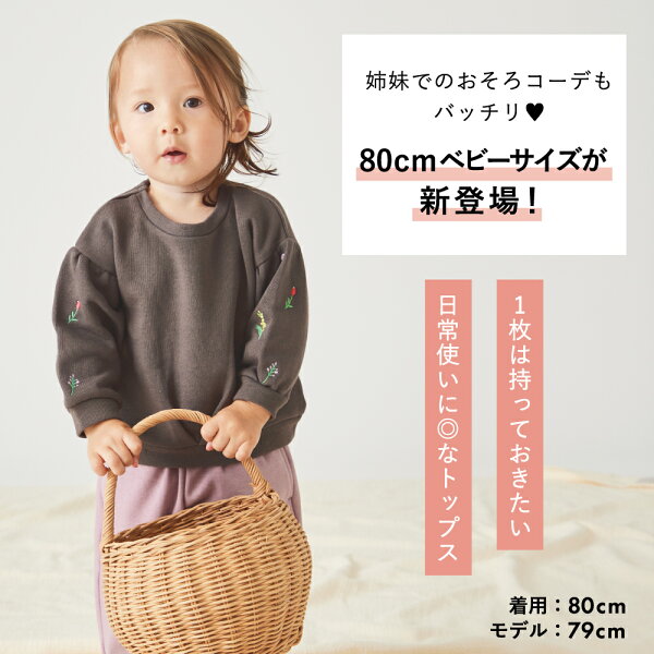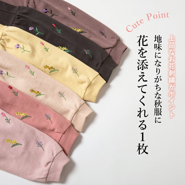 【 SALE 30%OFF】 袖刺繍 トレーナー | キッズ ベビー 子供 子供服 キッズ服 女の子 ガールズ 秋服 秋物 長袖 トップス キッズトレーナー 長袖トレーナー プルオーバー 裏毛 スウェット スエット 保育園 綿 コットン 刺繍 花柄 小花 ぽわん袖 25AW 203235020